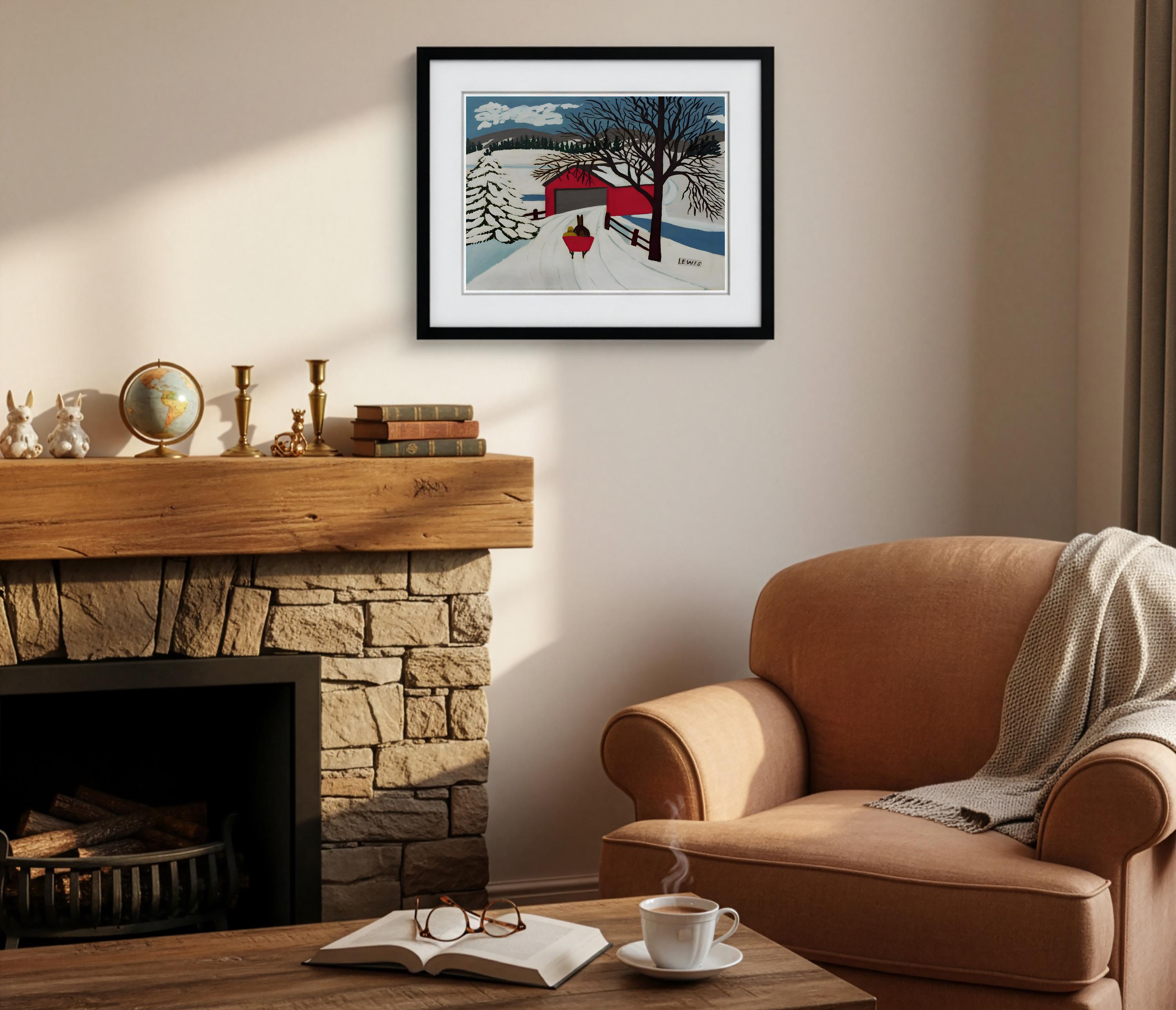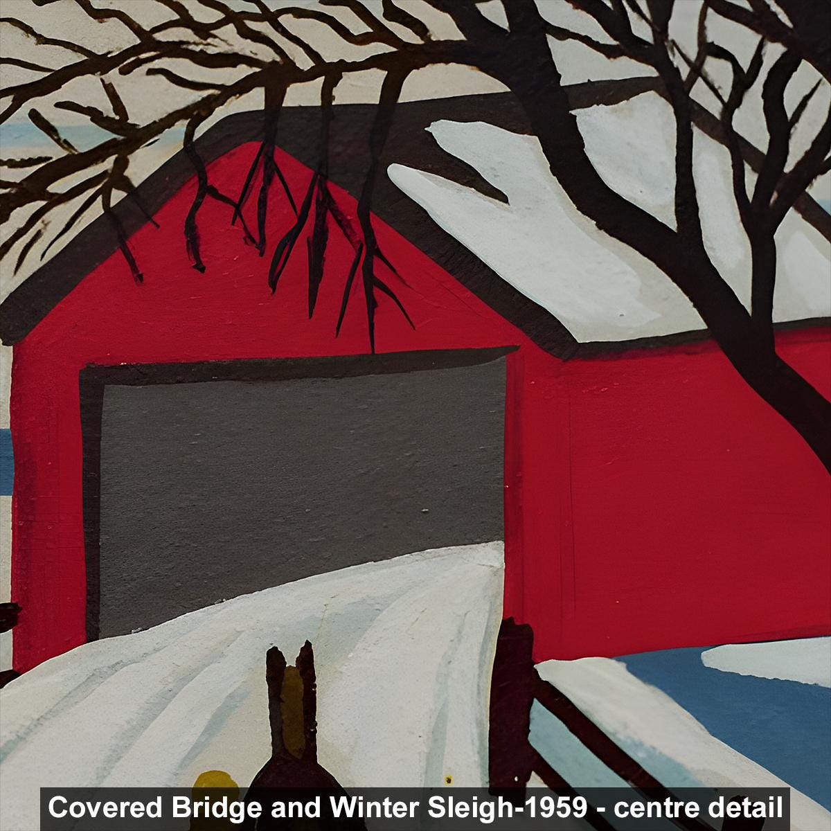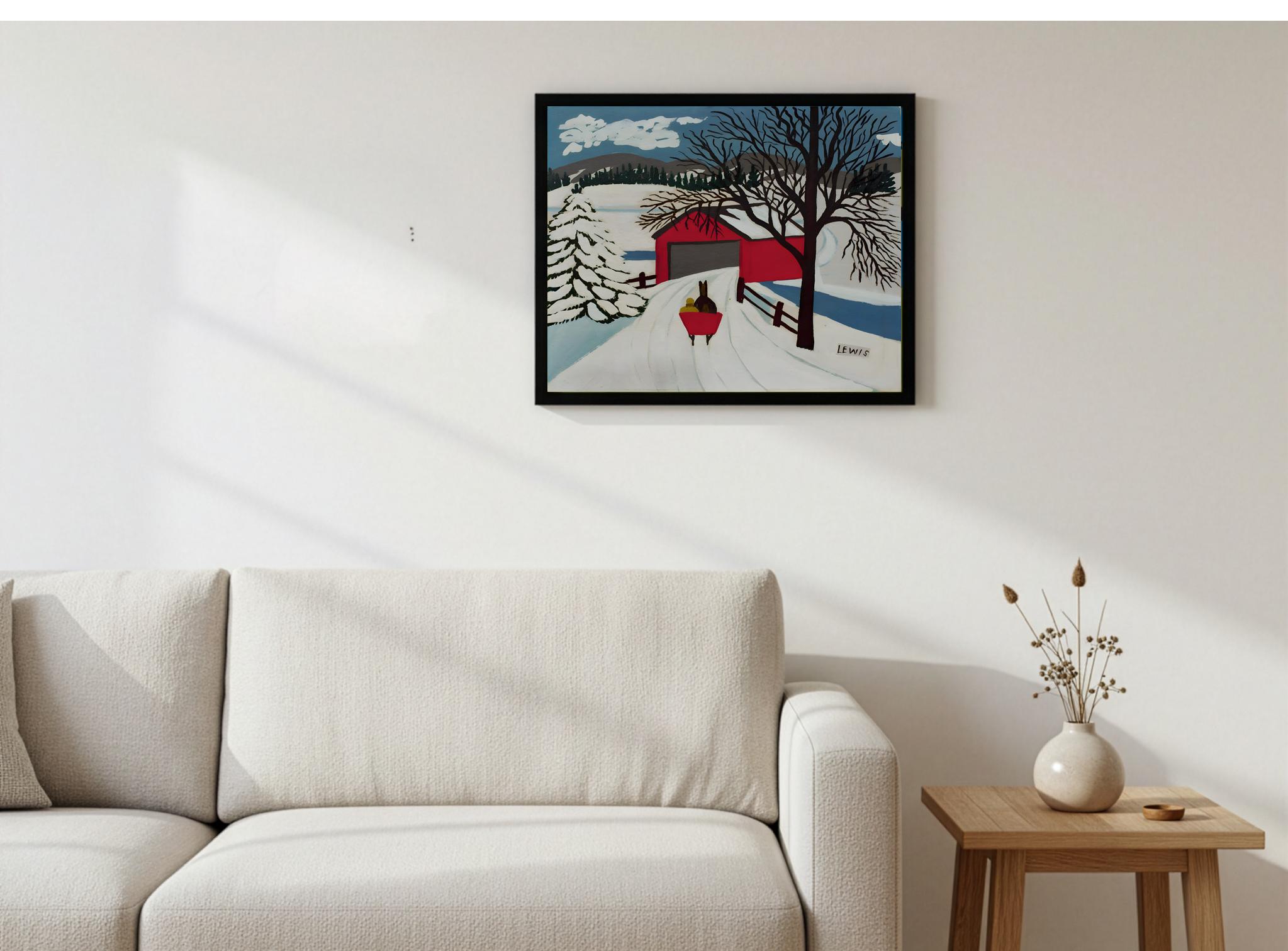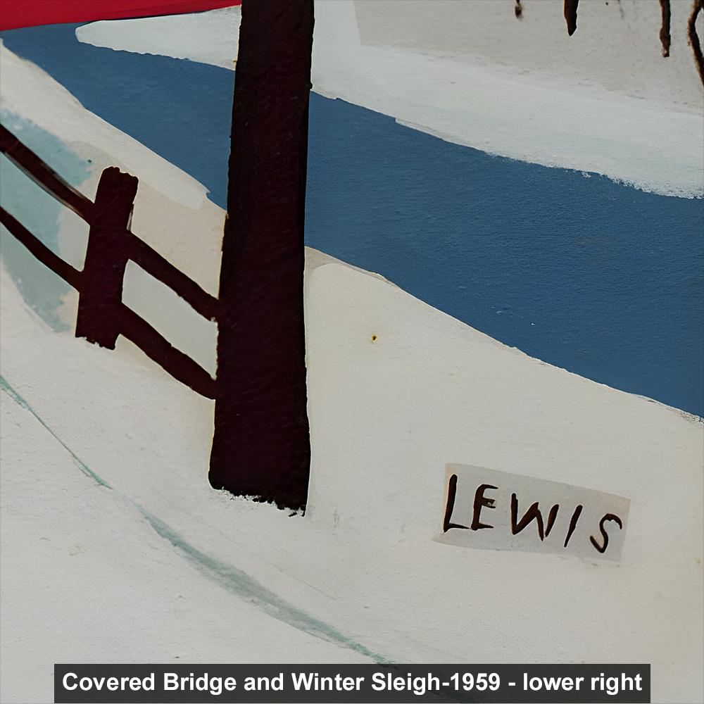 Maud Lewis, Covered Bridge and Winter Sleigh-1959 | Vintage Canadian Folk Art