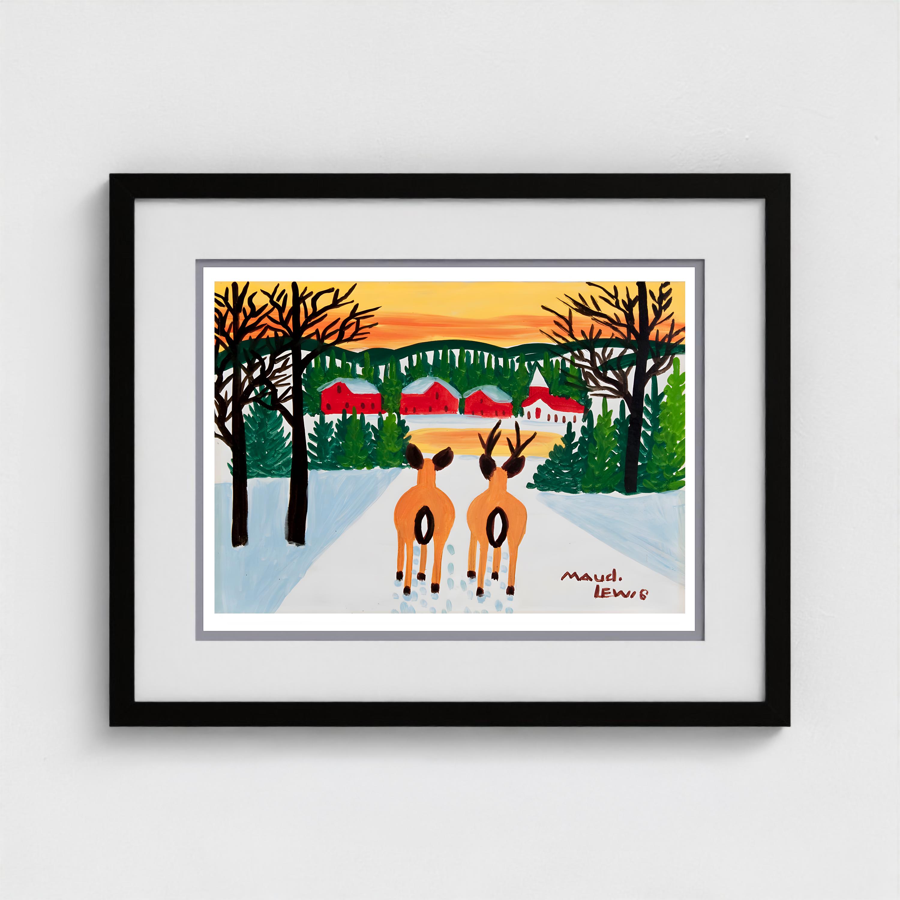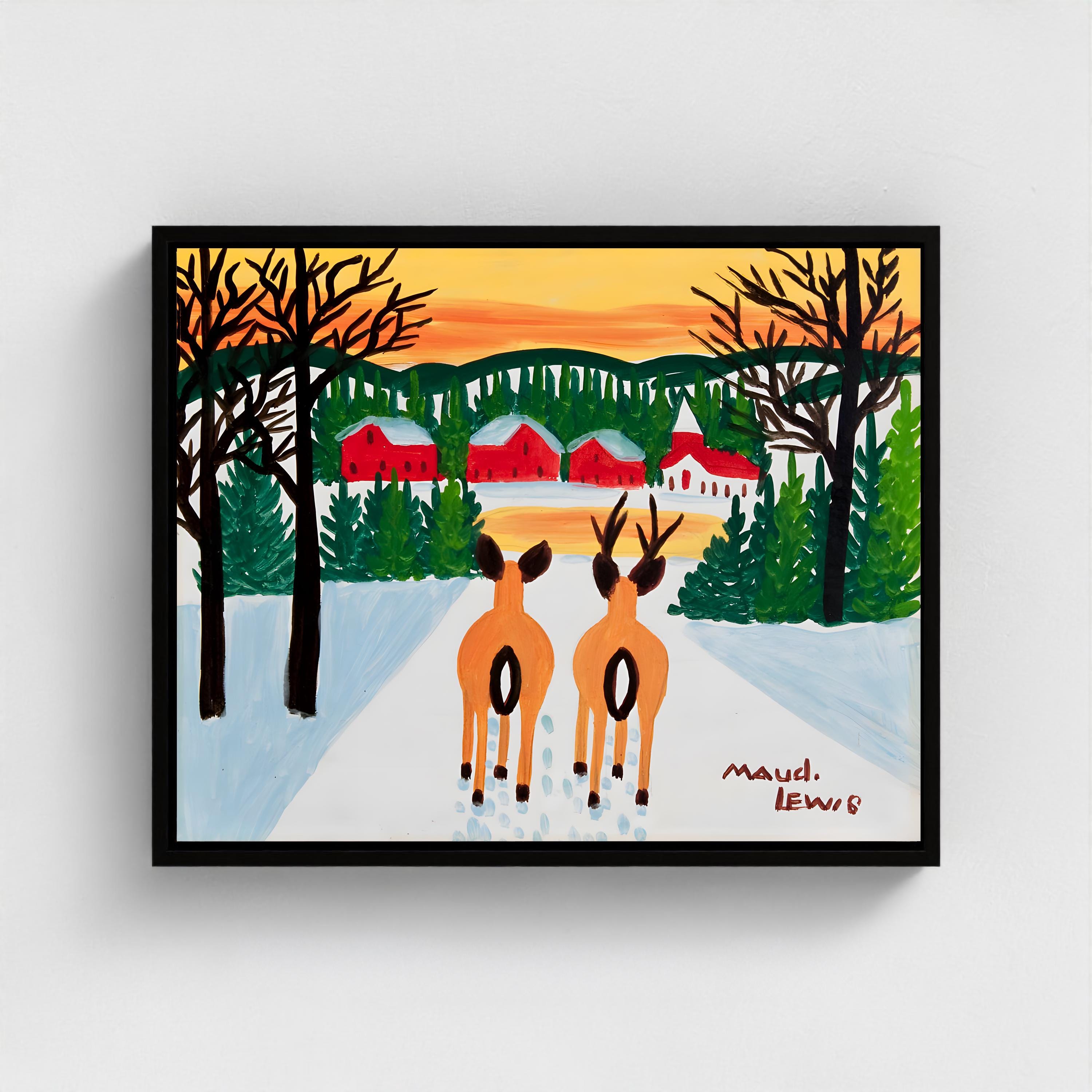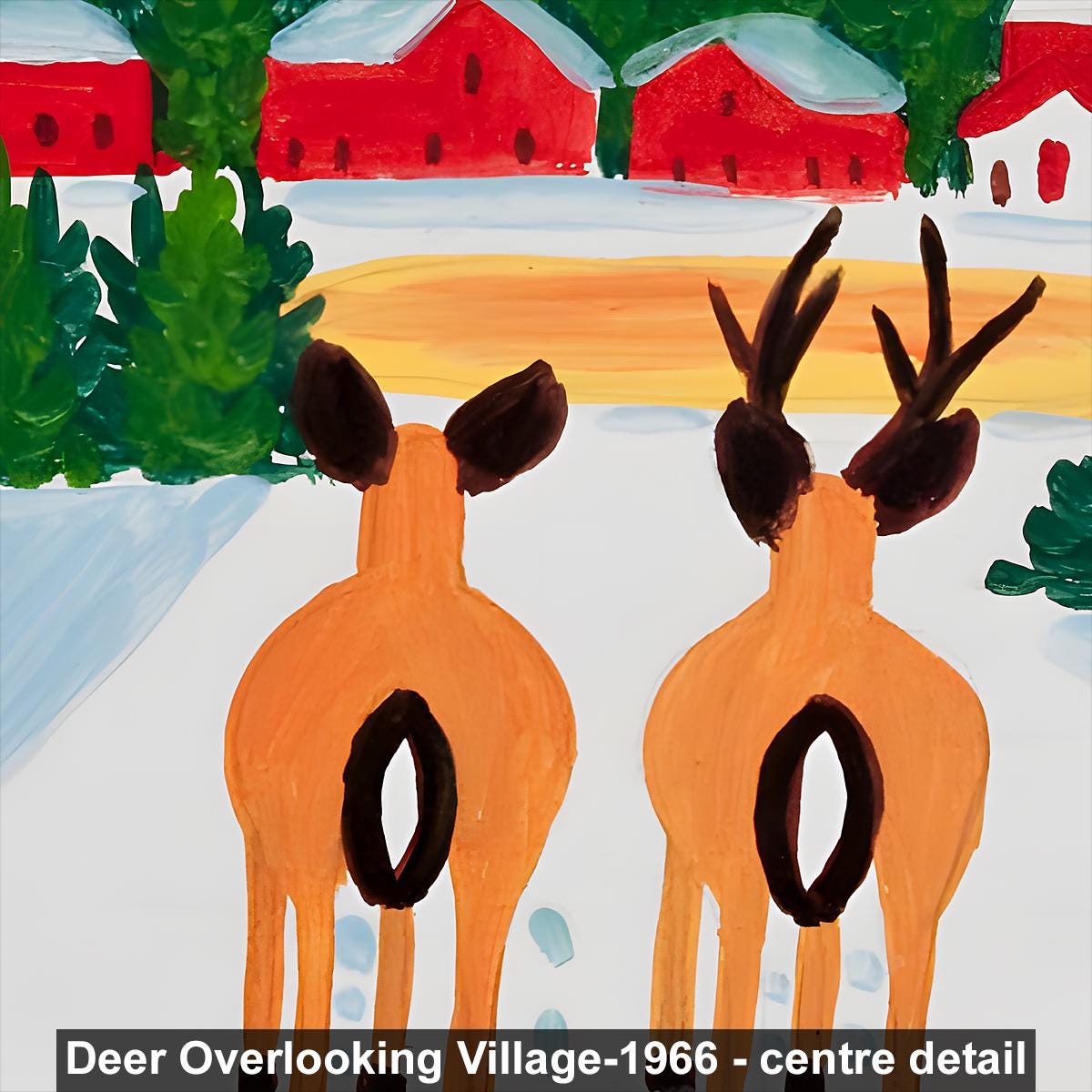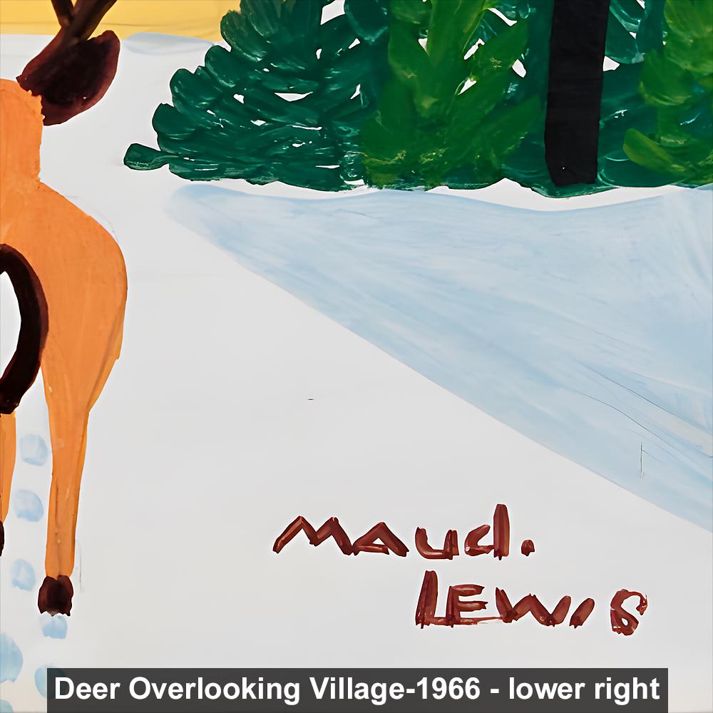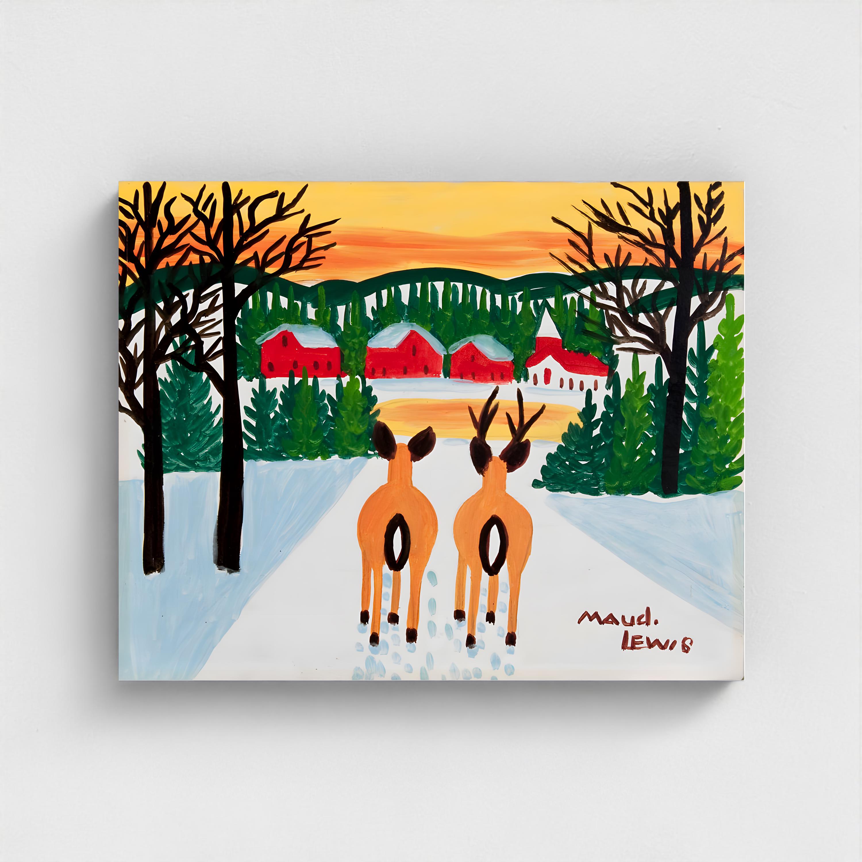 Maud Lewis, Deer Overlooking Village-1966 | Vintage Canadian Folk Art
