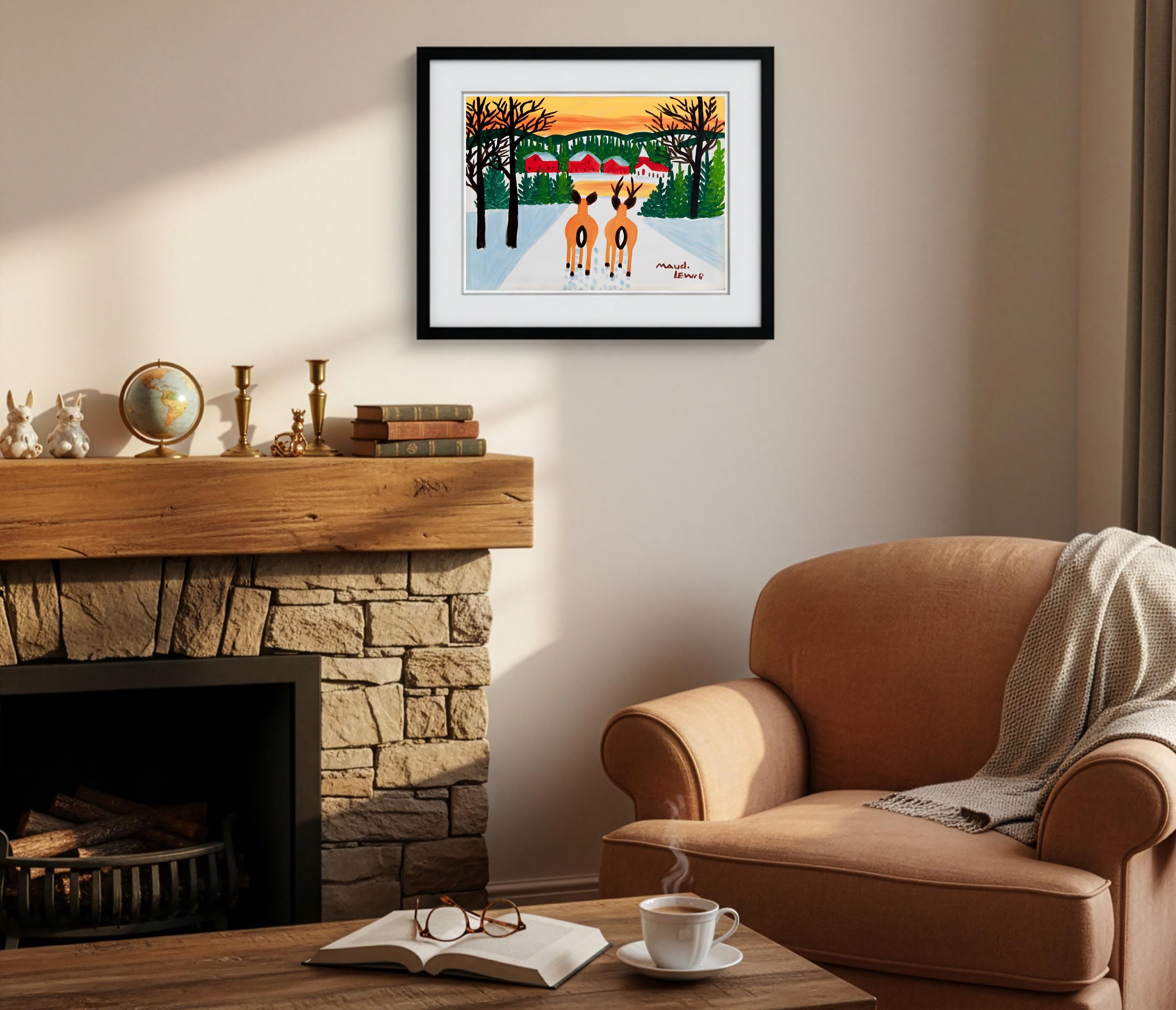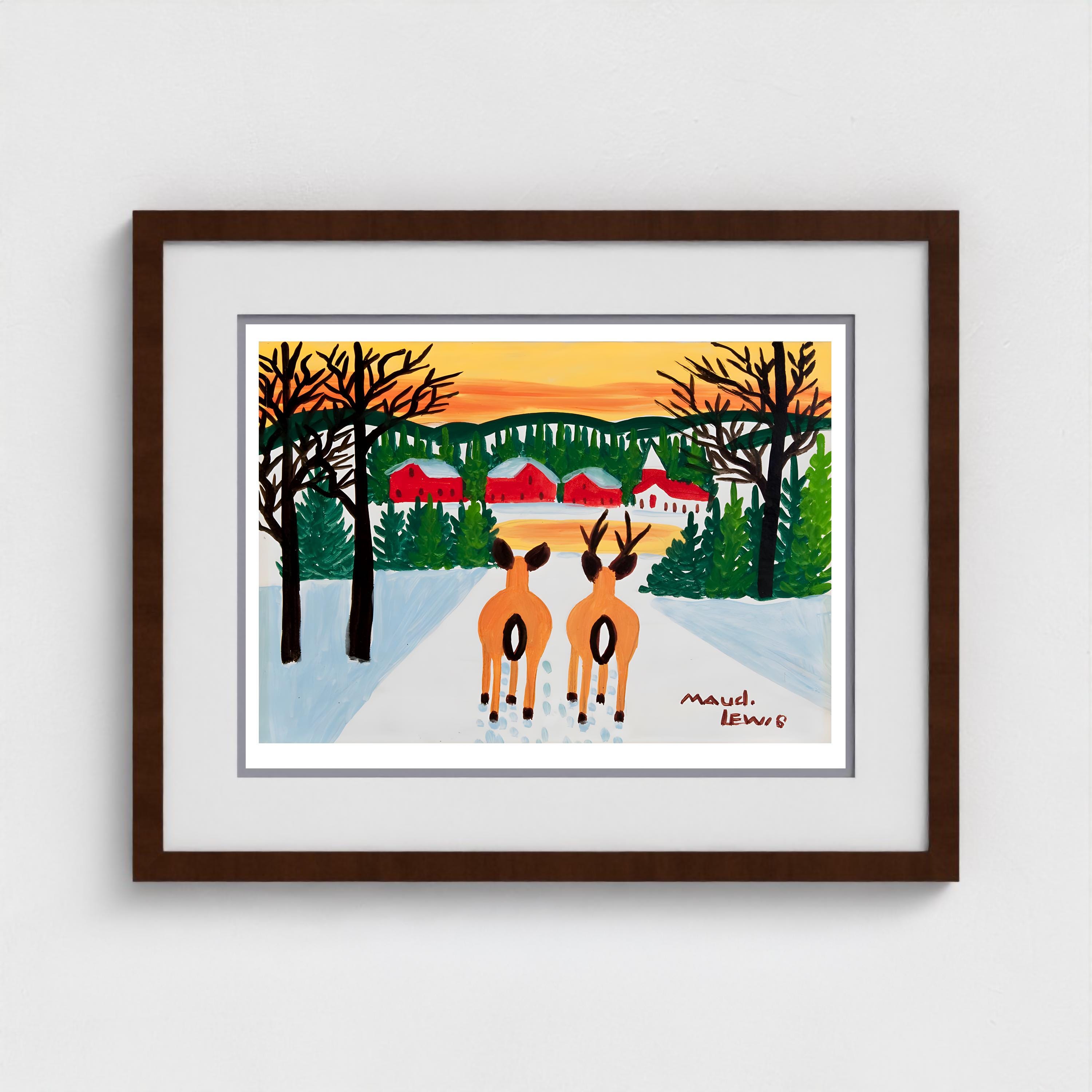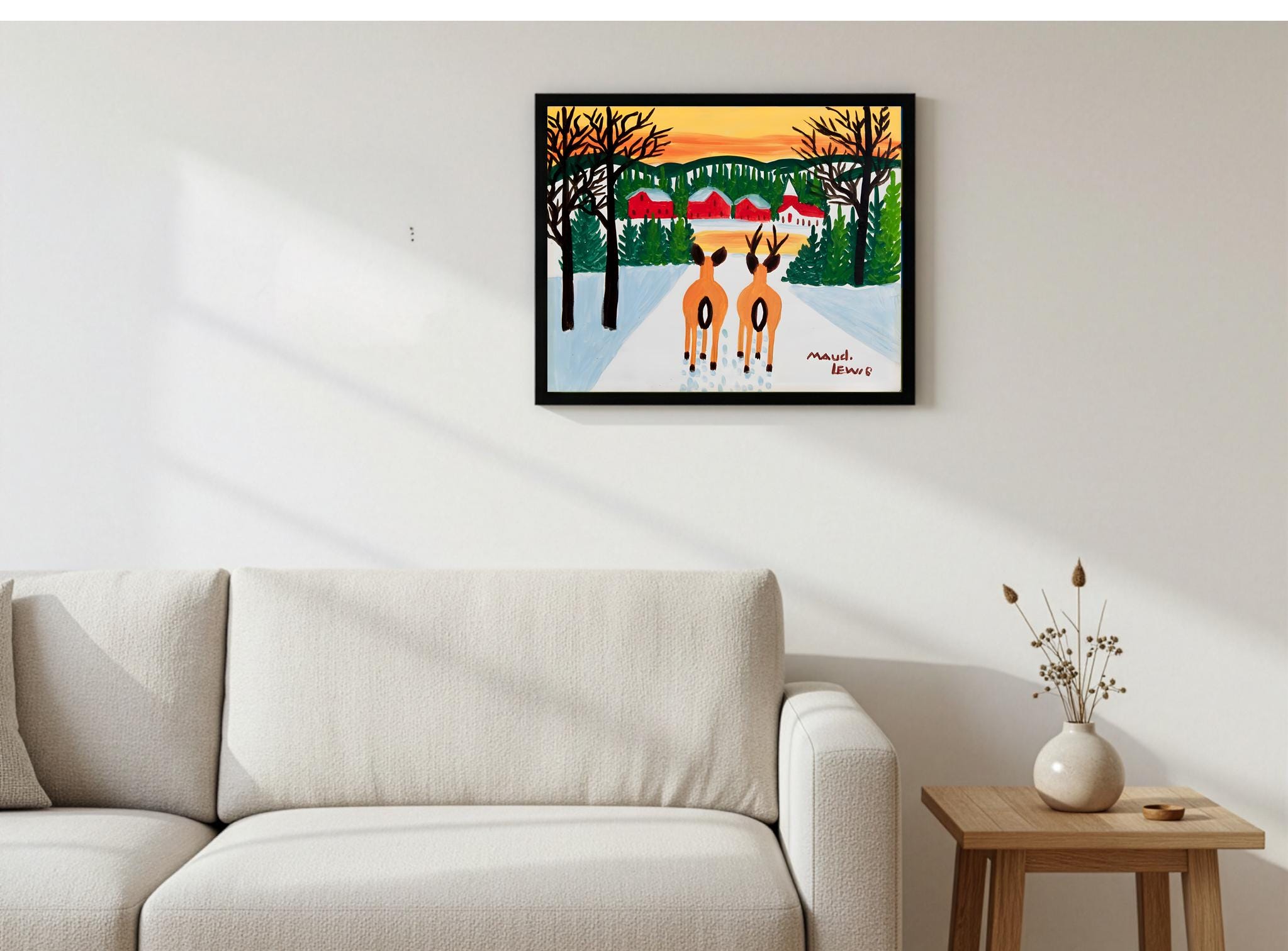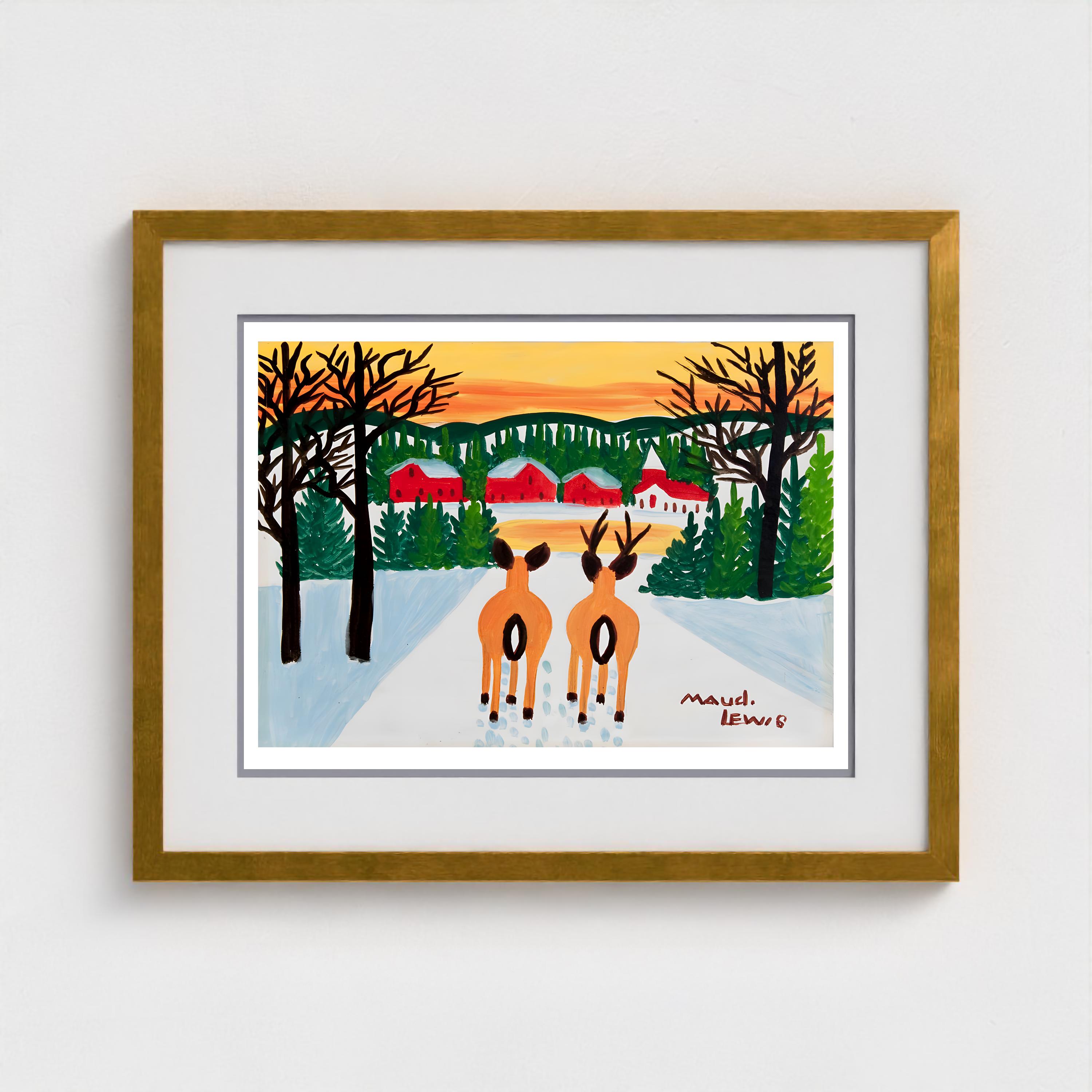 Maud Lewis, Deer Overlooking Village-1966 | Vintage Canadian Folk Art