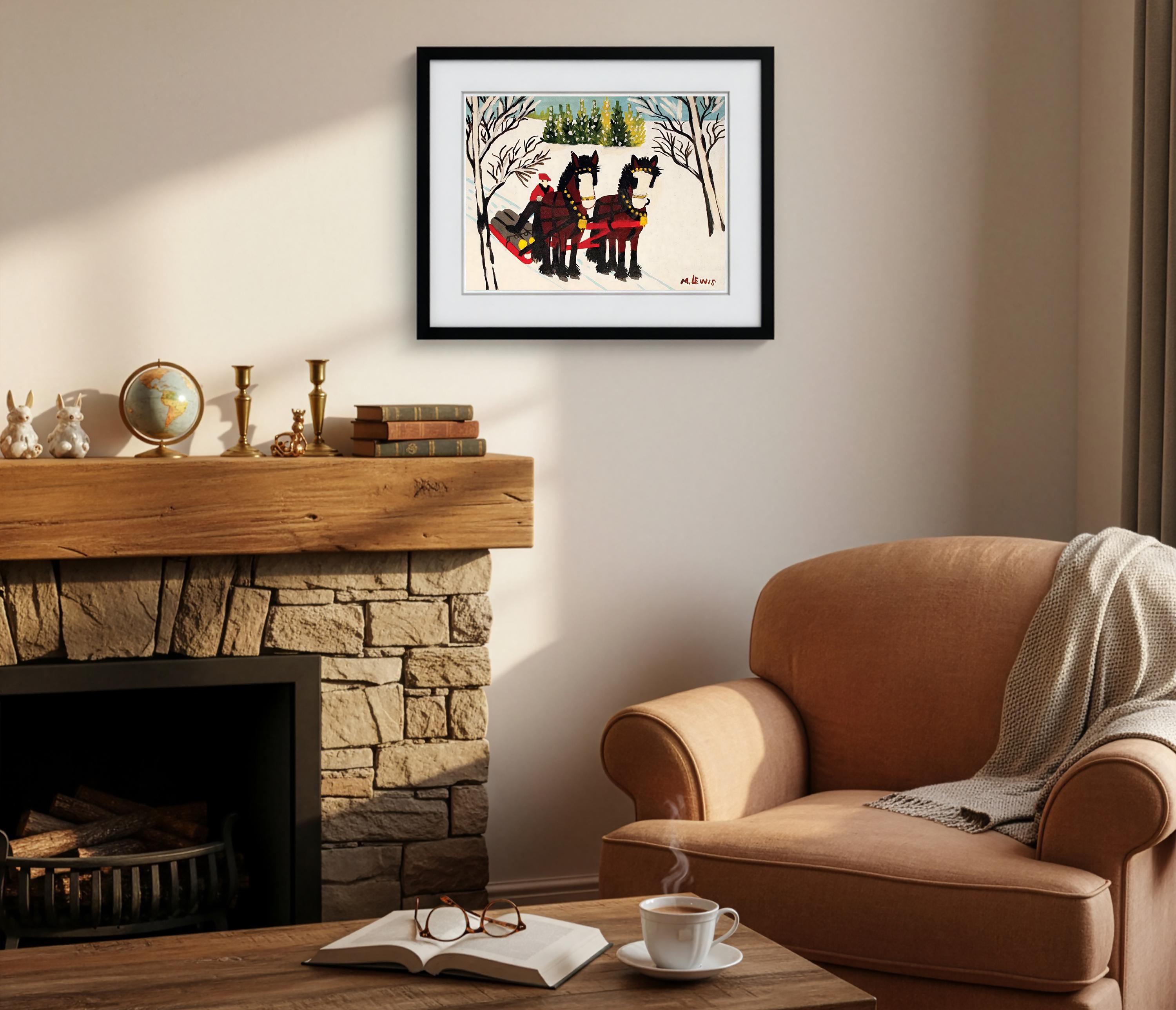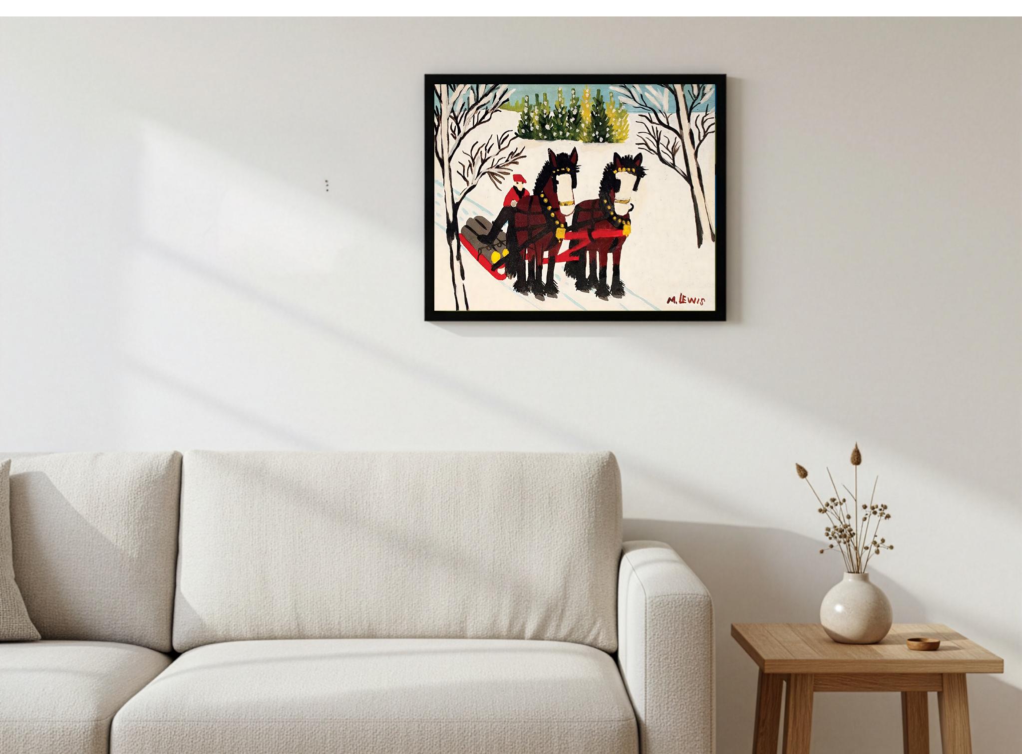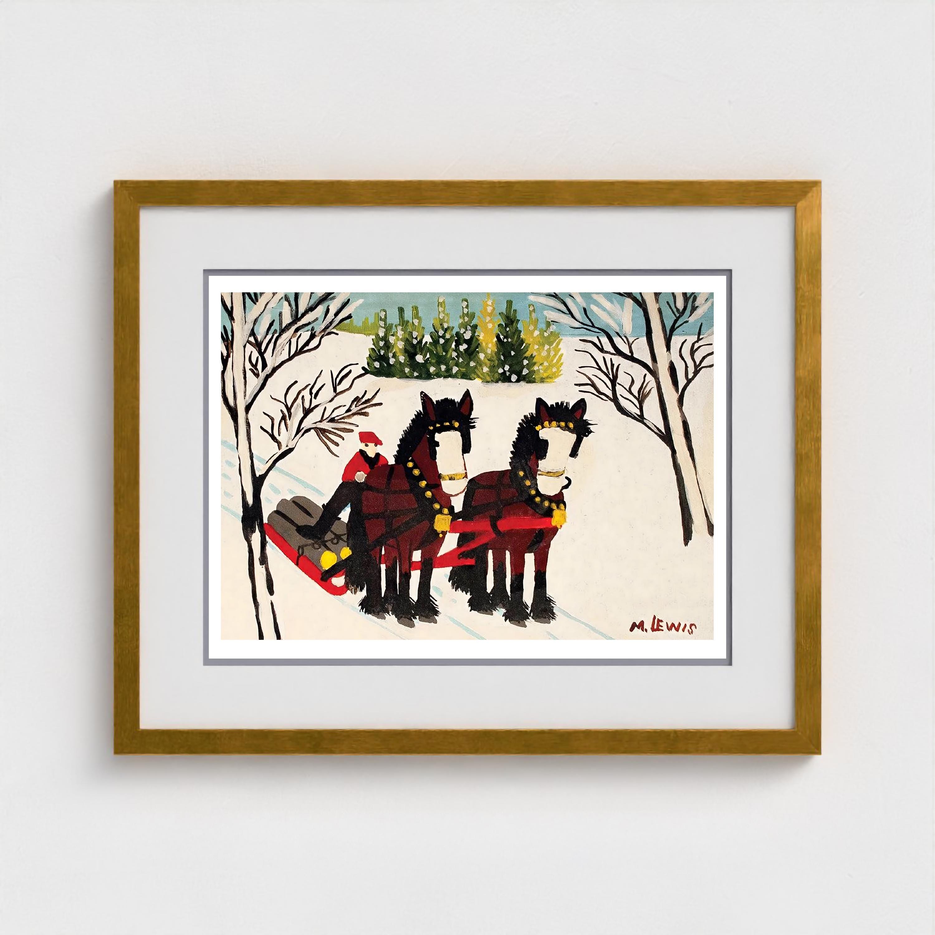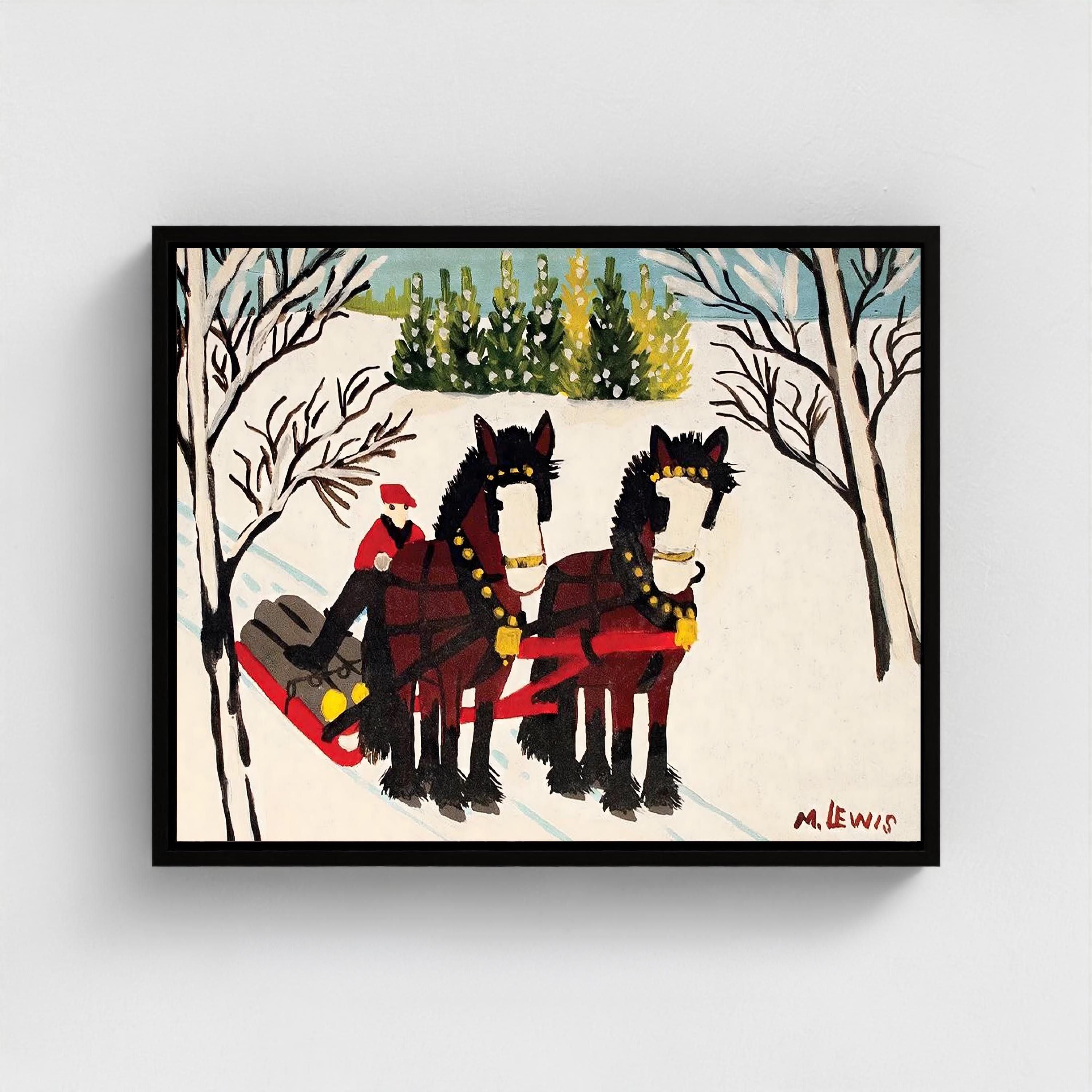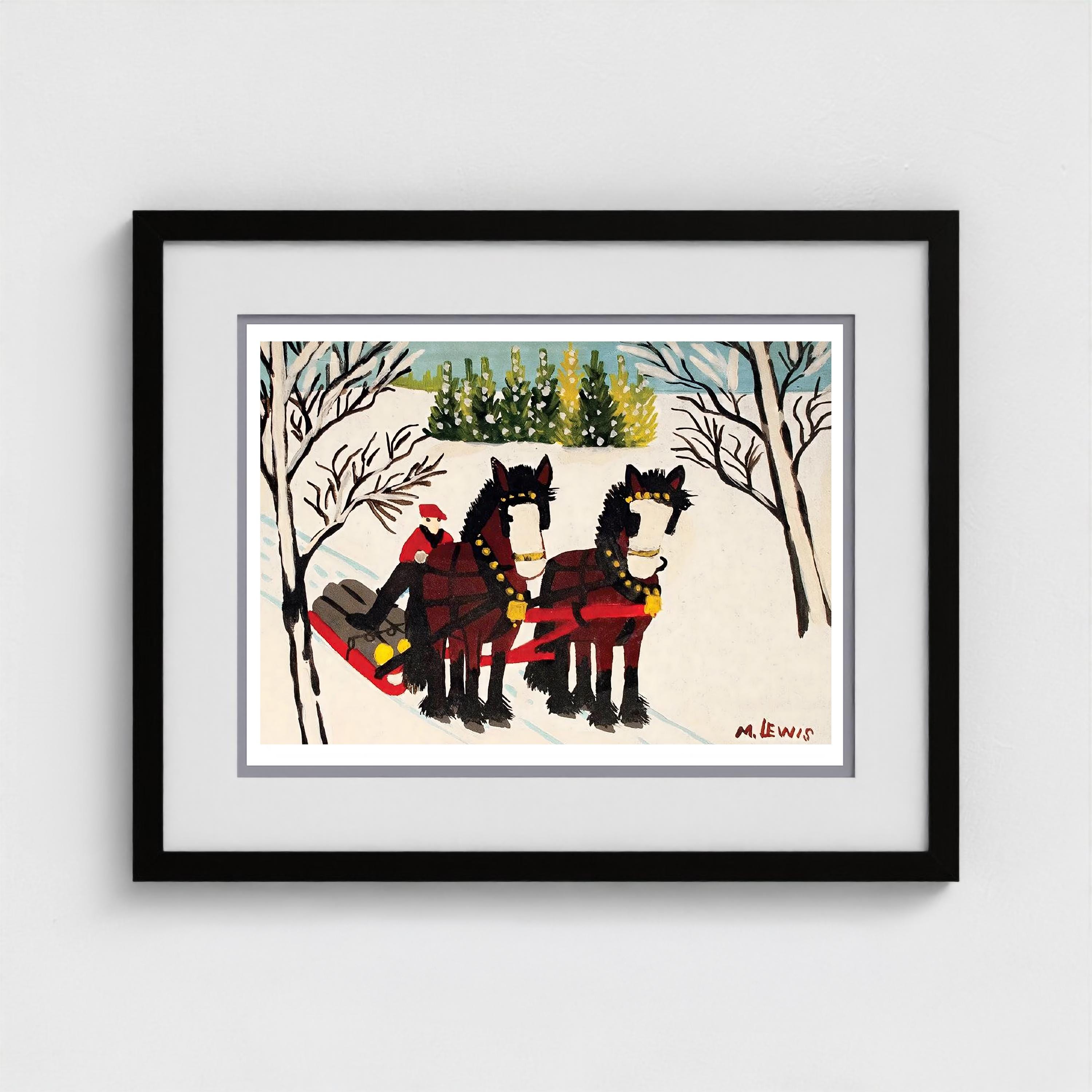 Maud Lewis, Horses Hauling Logs | Vintage Canadian Folk Art