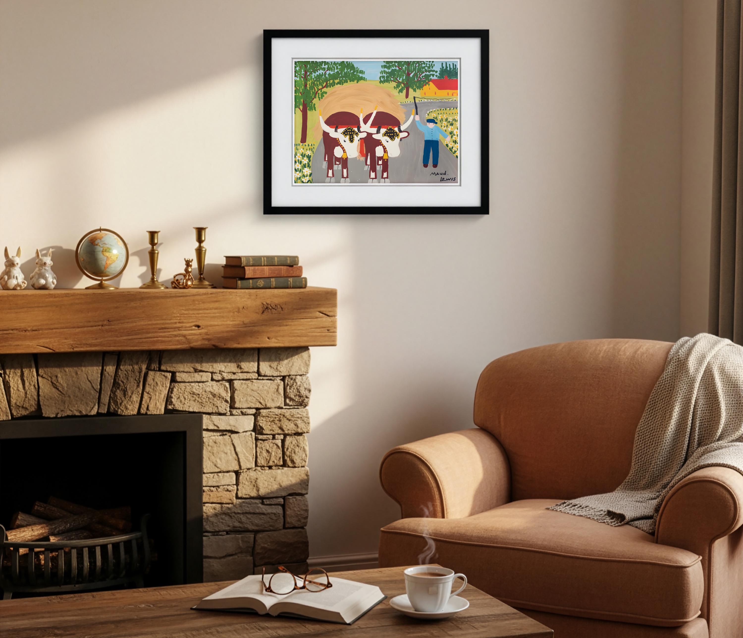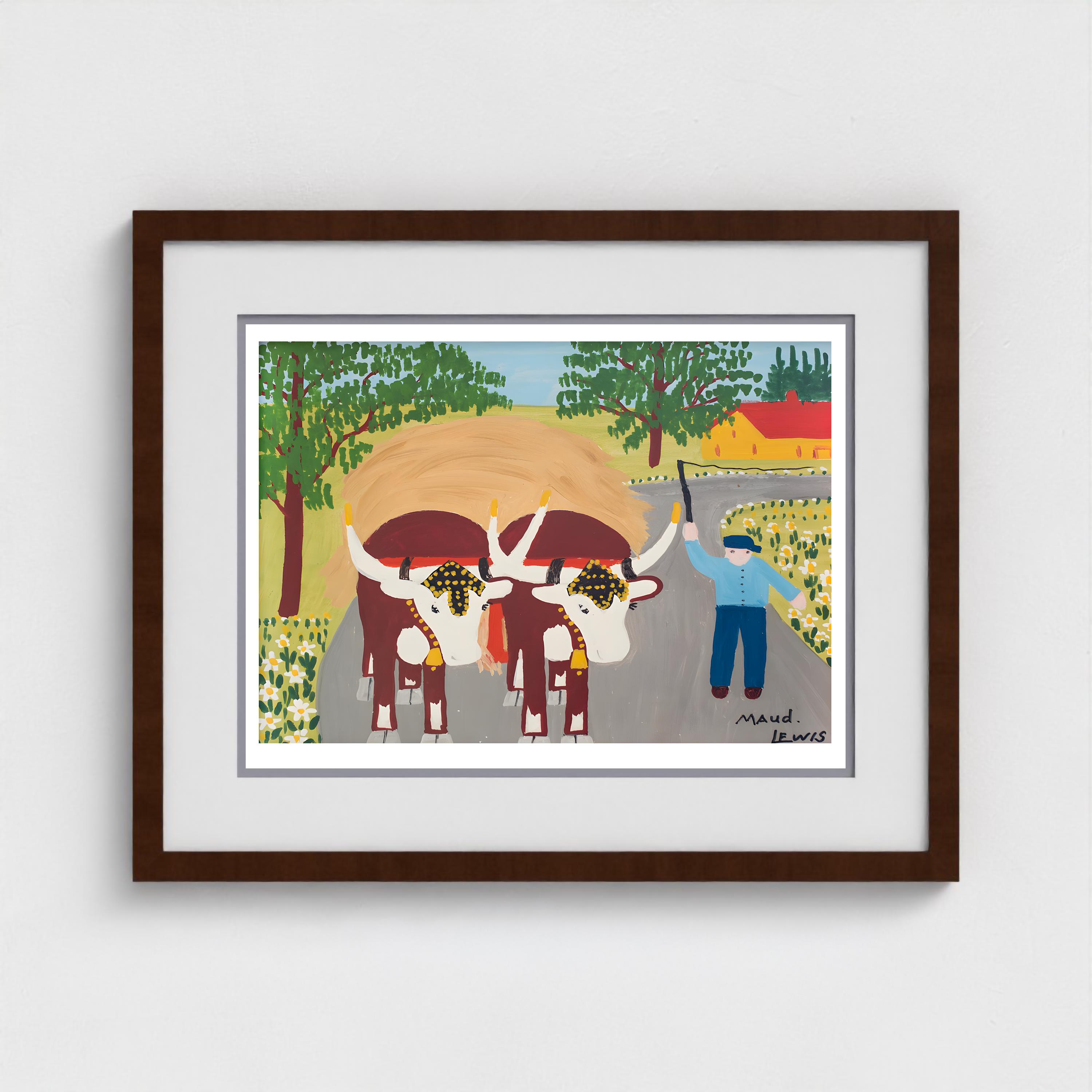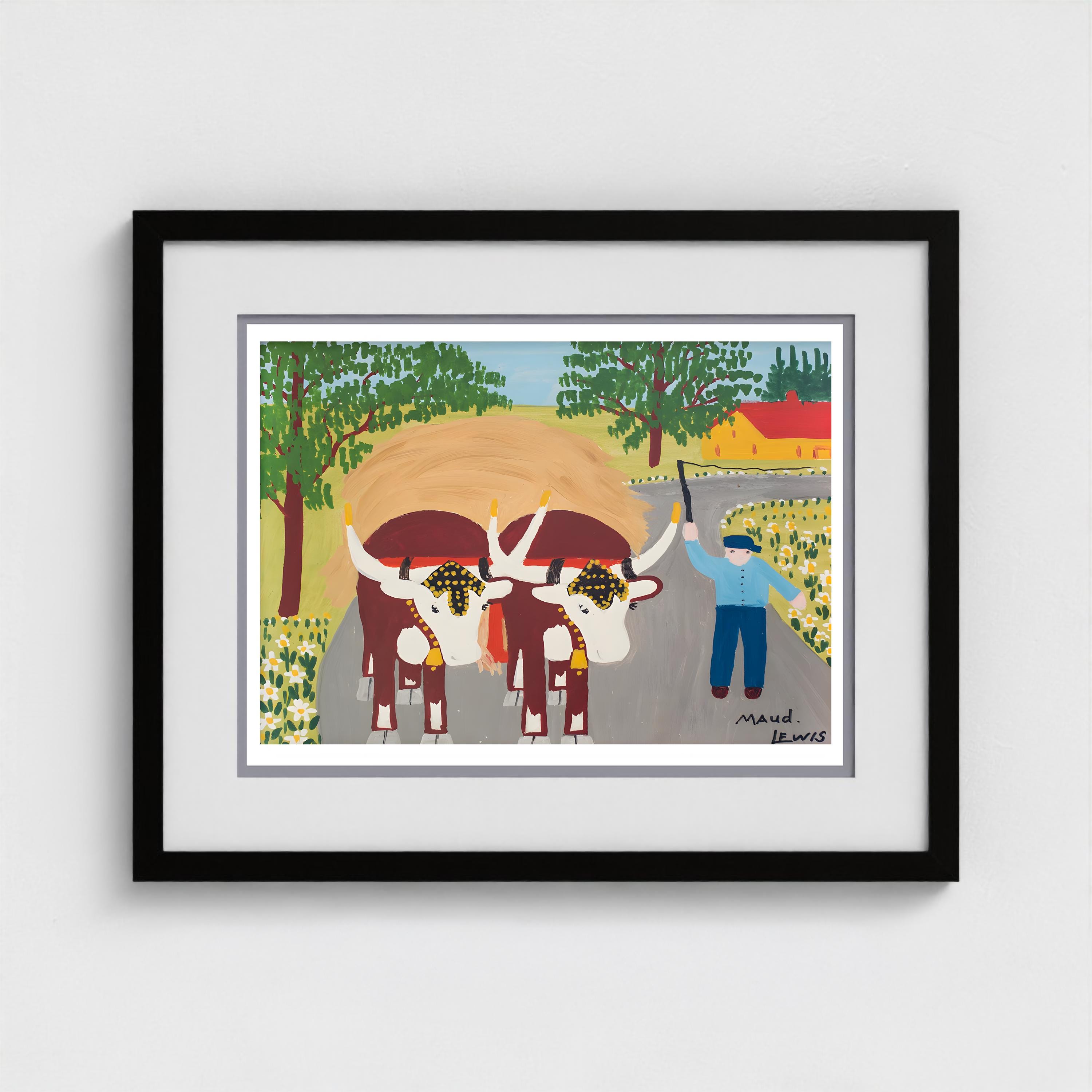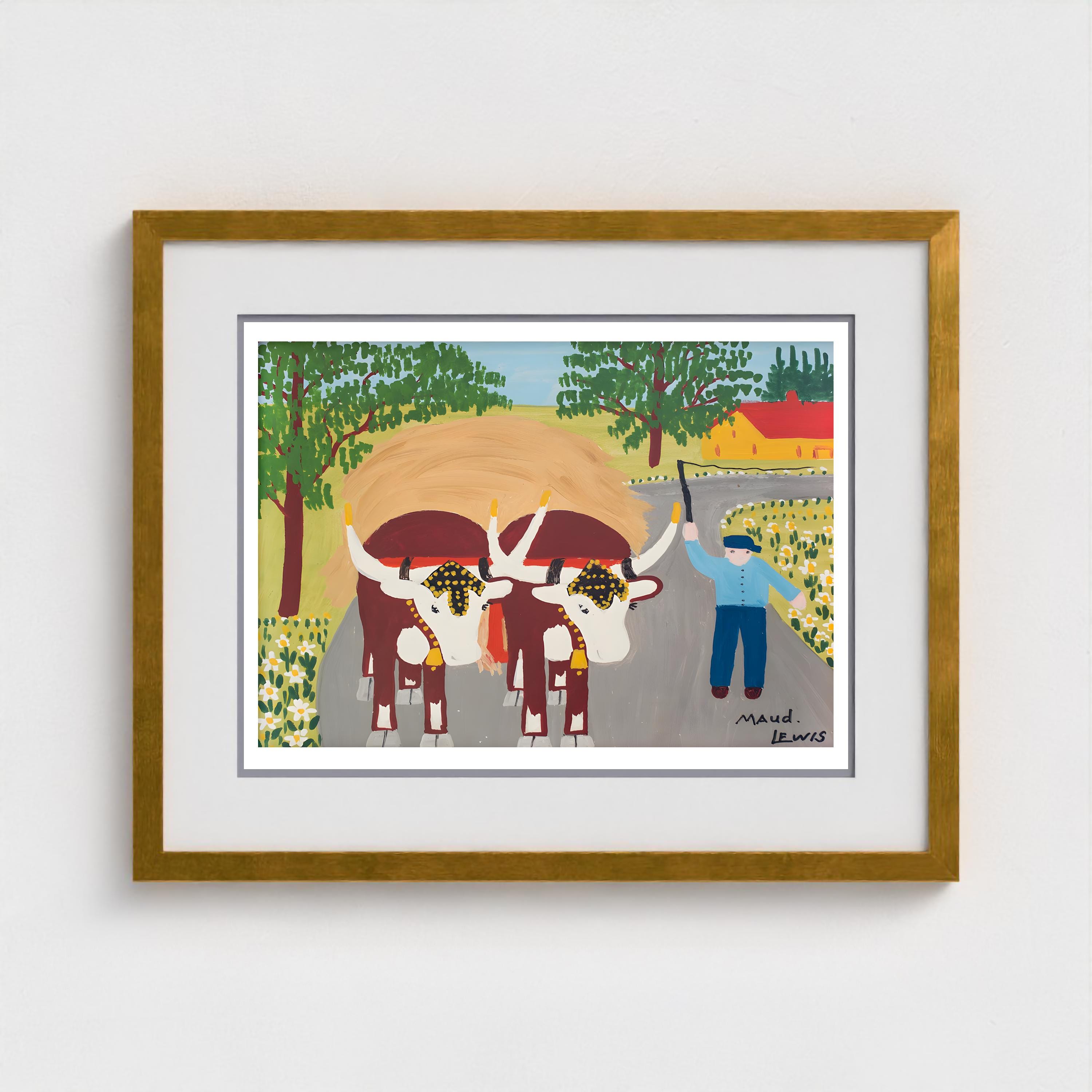 Maud Lewis, Oxen Hauling Hay-1964 | Vintage Canadian Folk Art