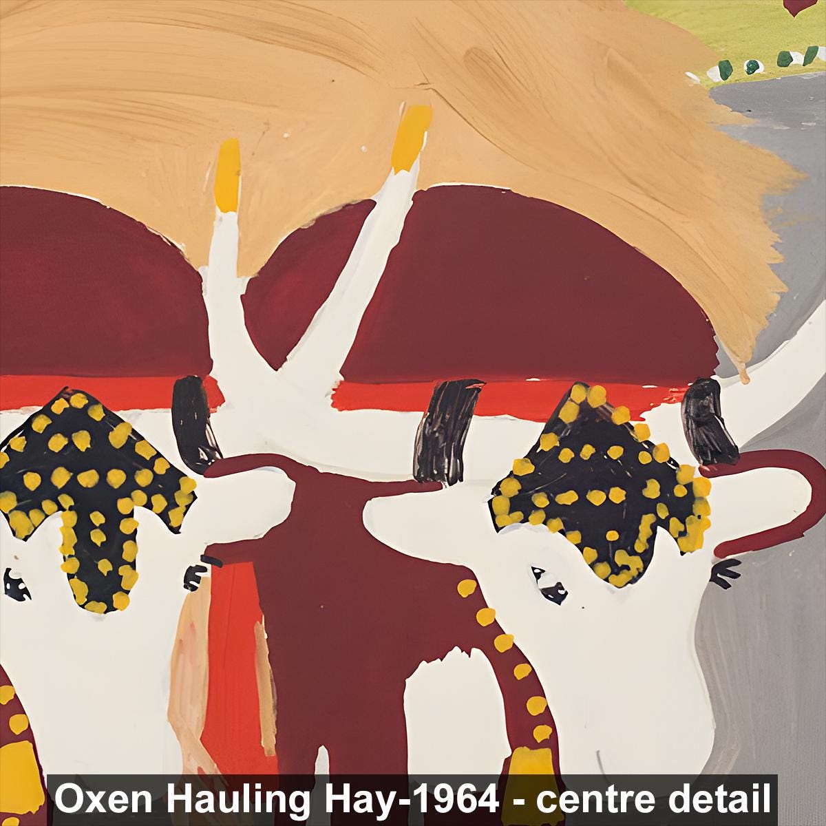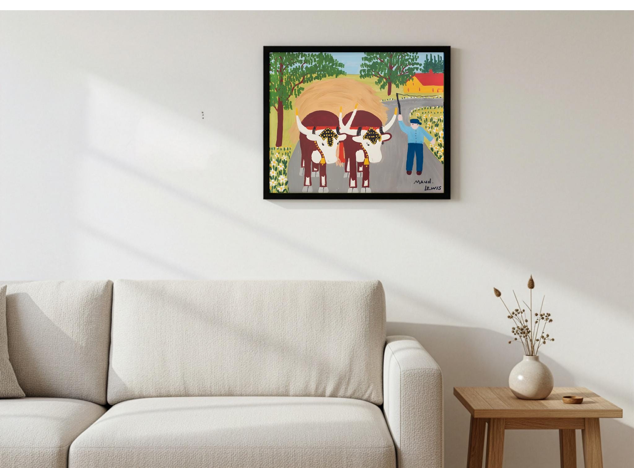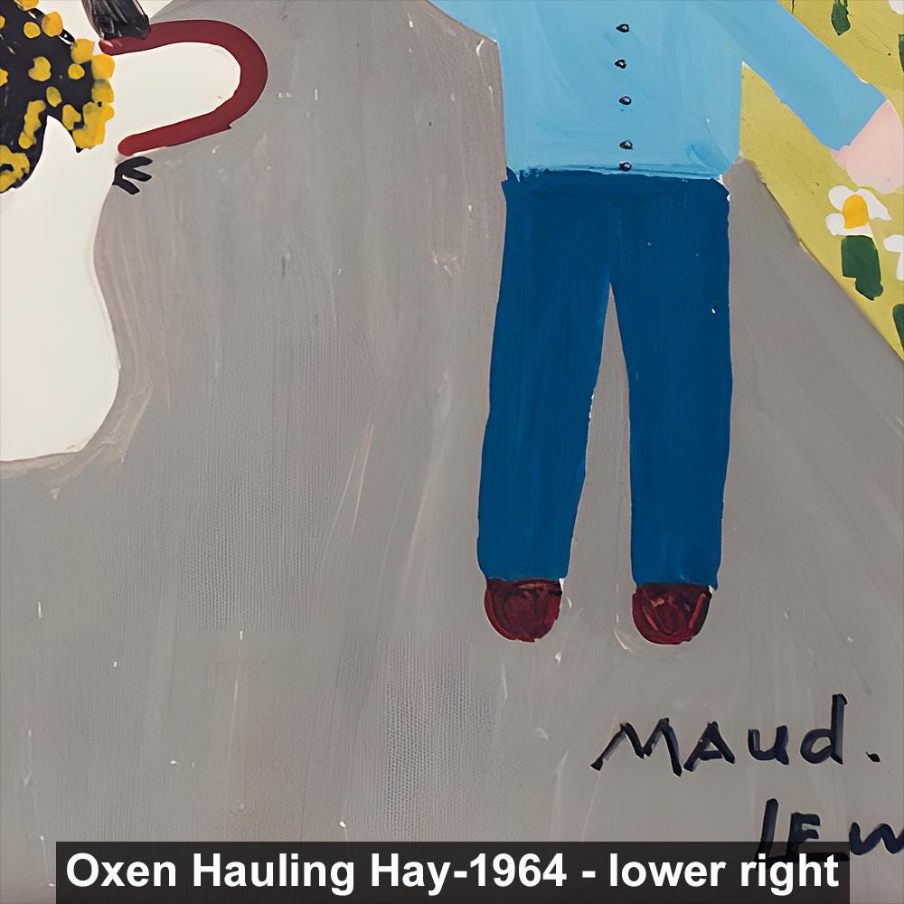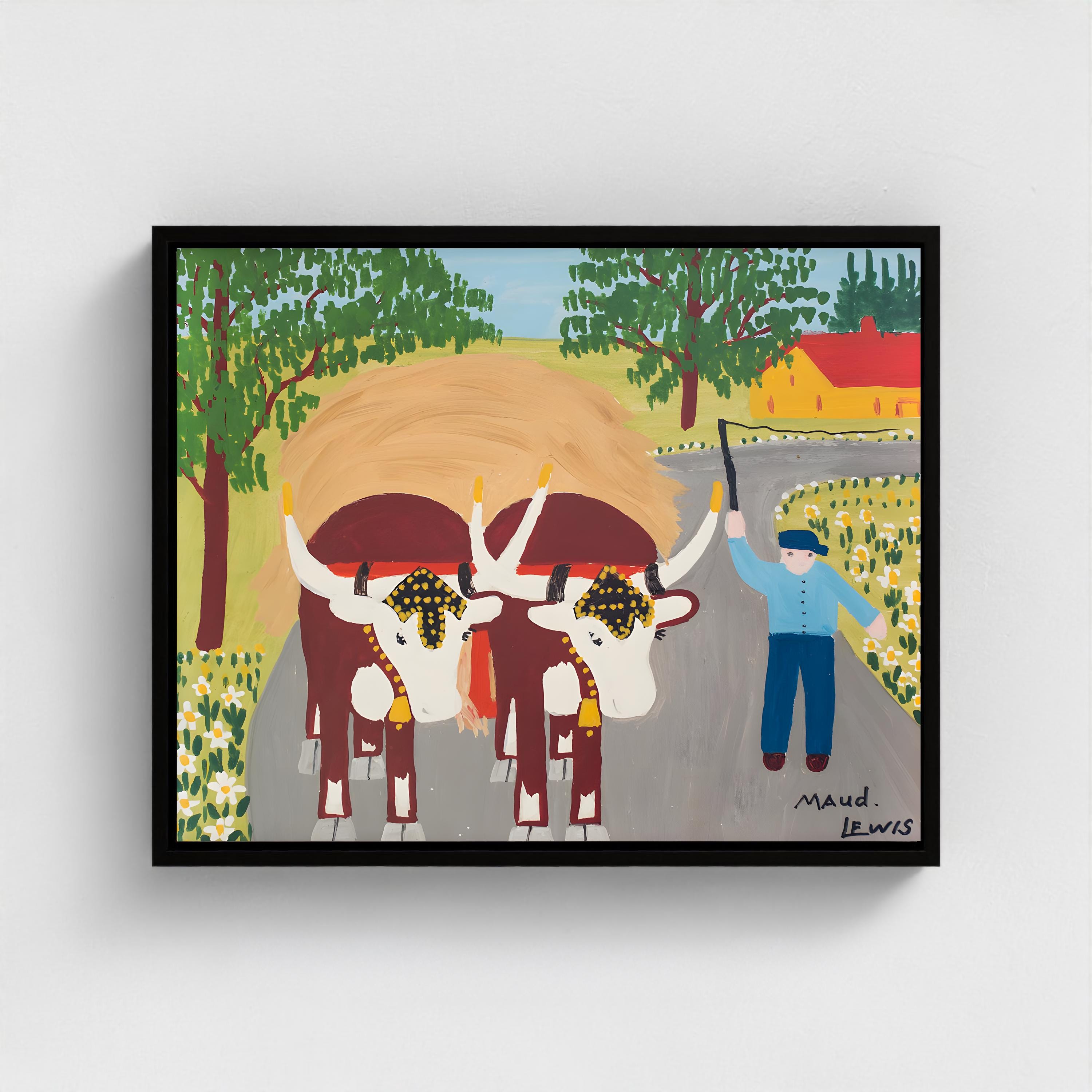 Maud Lewis, Oxen Hauling Hay-1964 | Vintage Canadian Folk Art