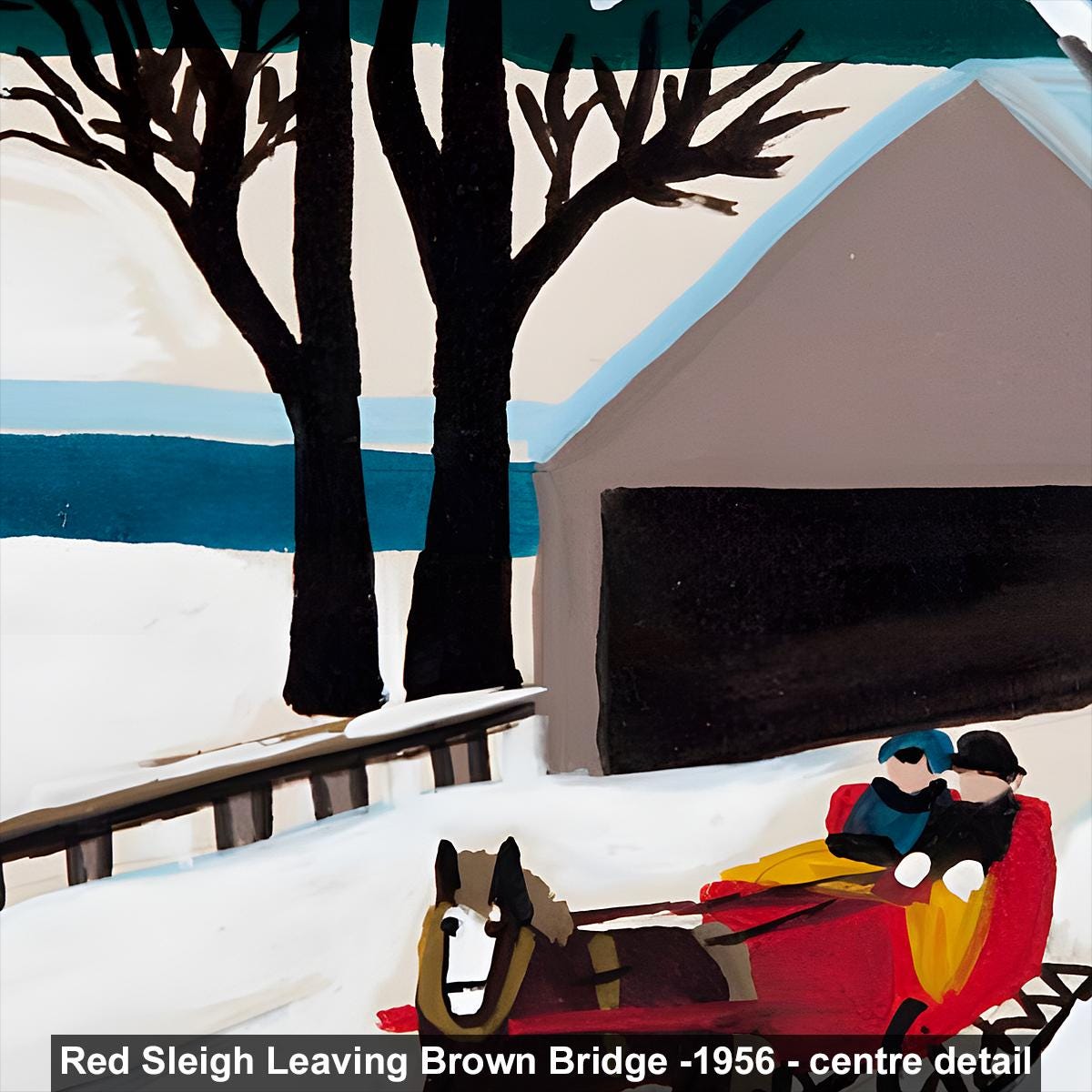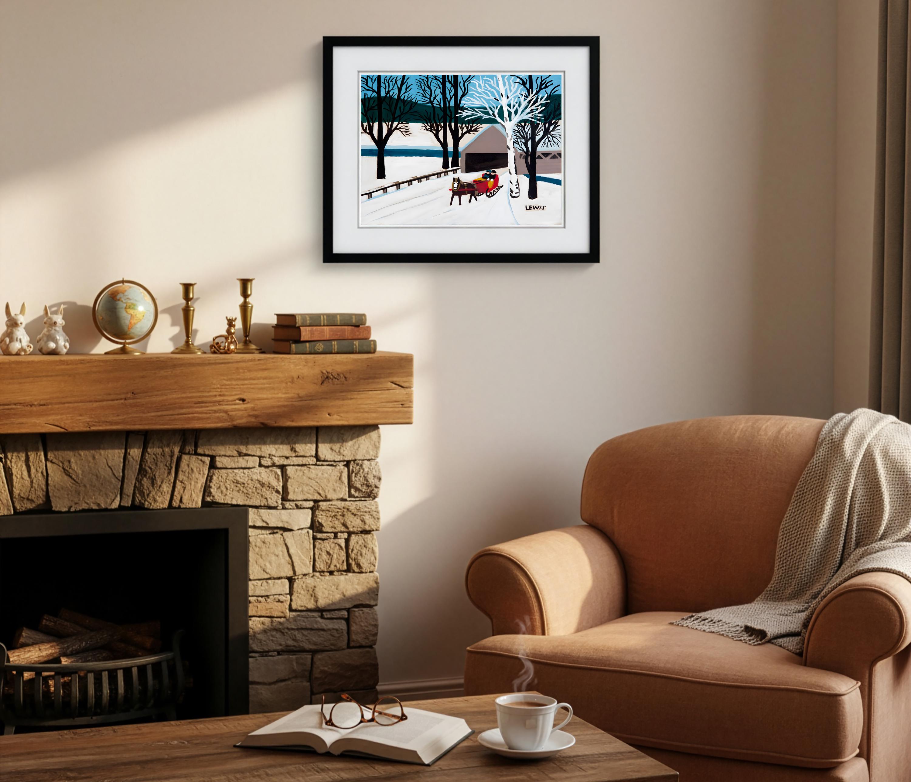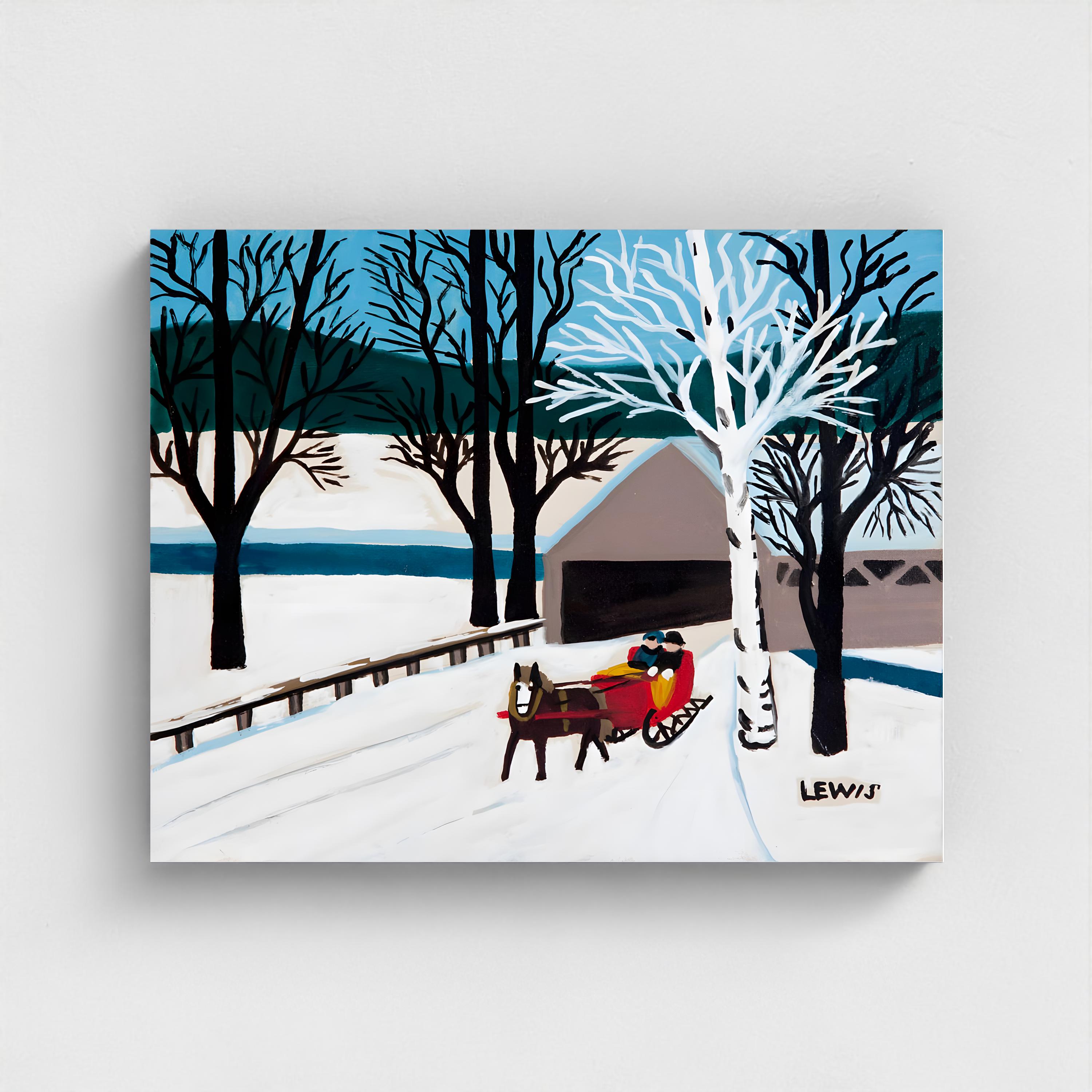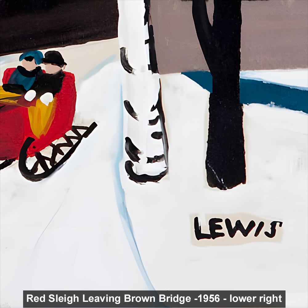 Maud Lewis, Red Sleigh Leaving Brown Bridge -1956 | Vintage Canadian Folk Art