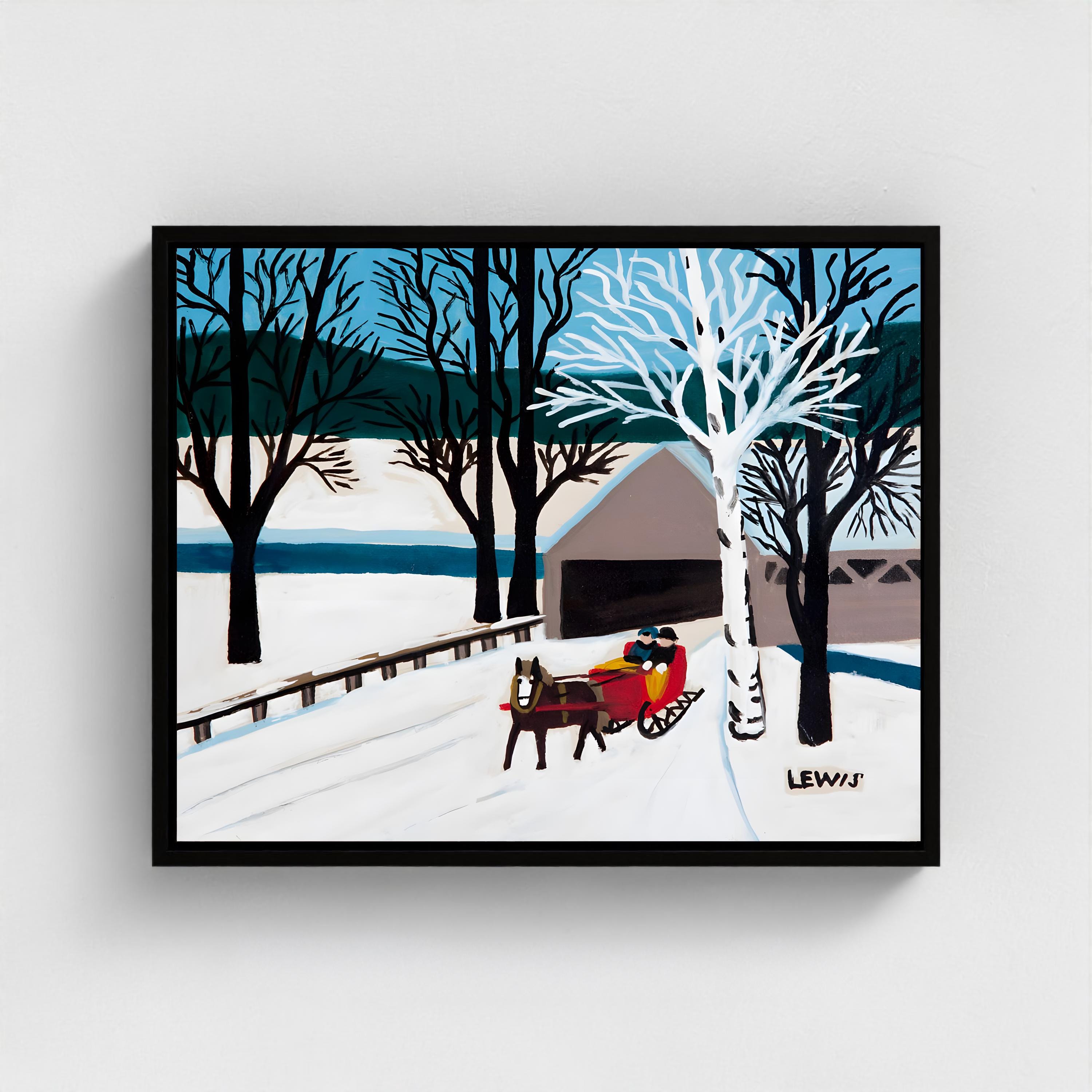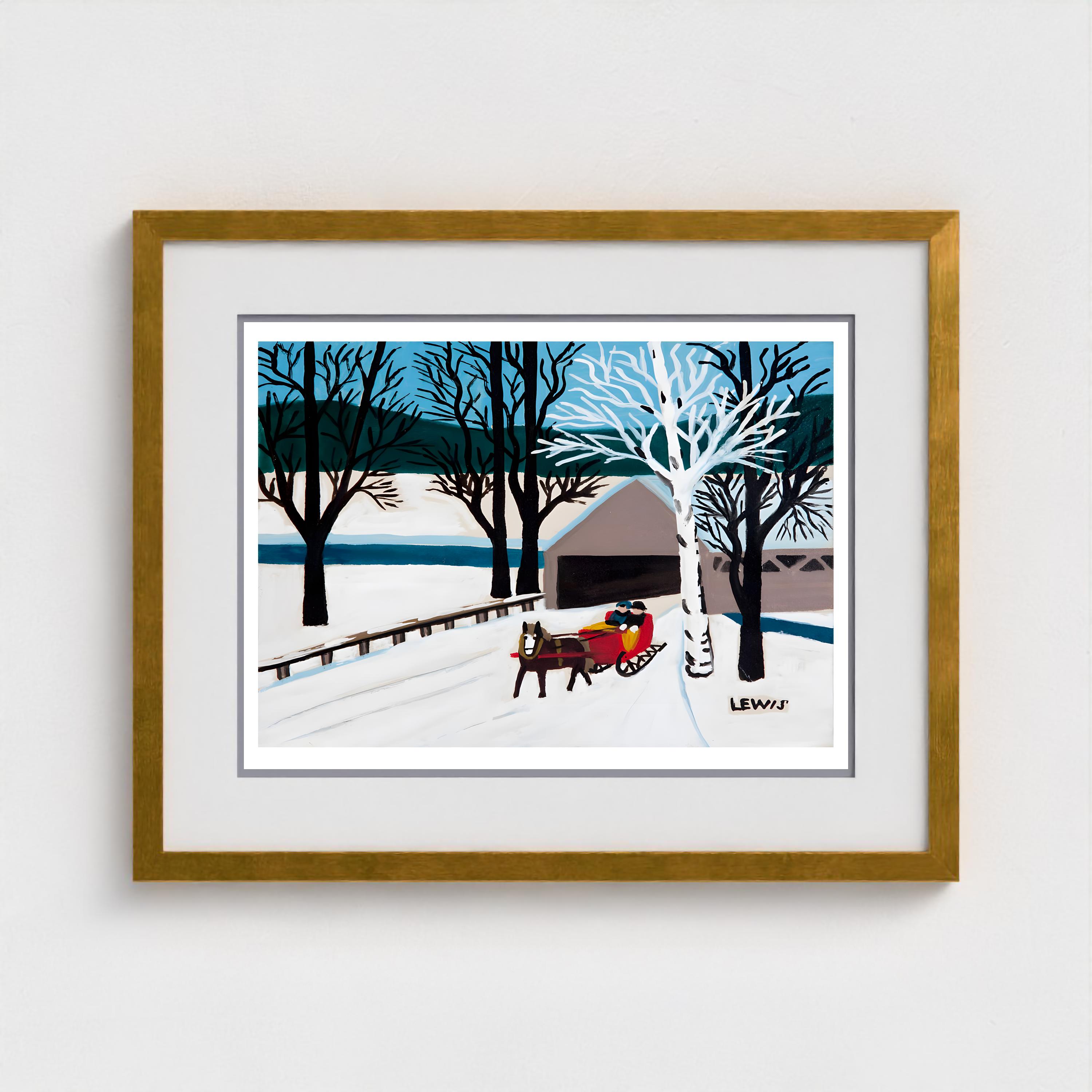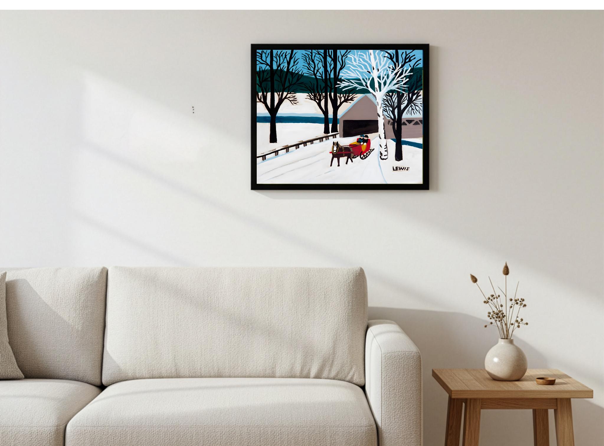 Maud Lewis, Red Sleigh Leaving Brown Bridge -1956 | Vintage Canadian Folk Art