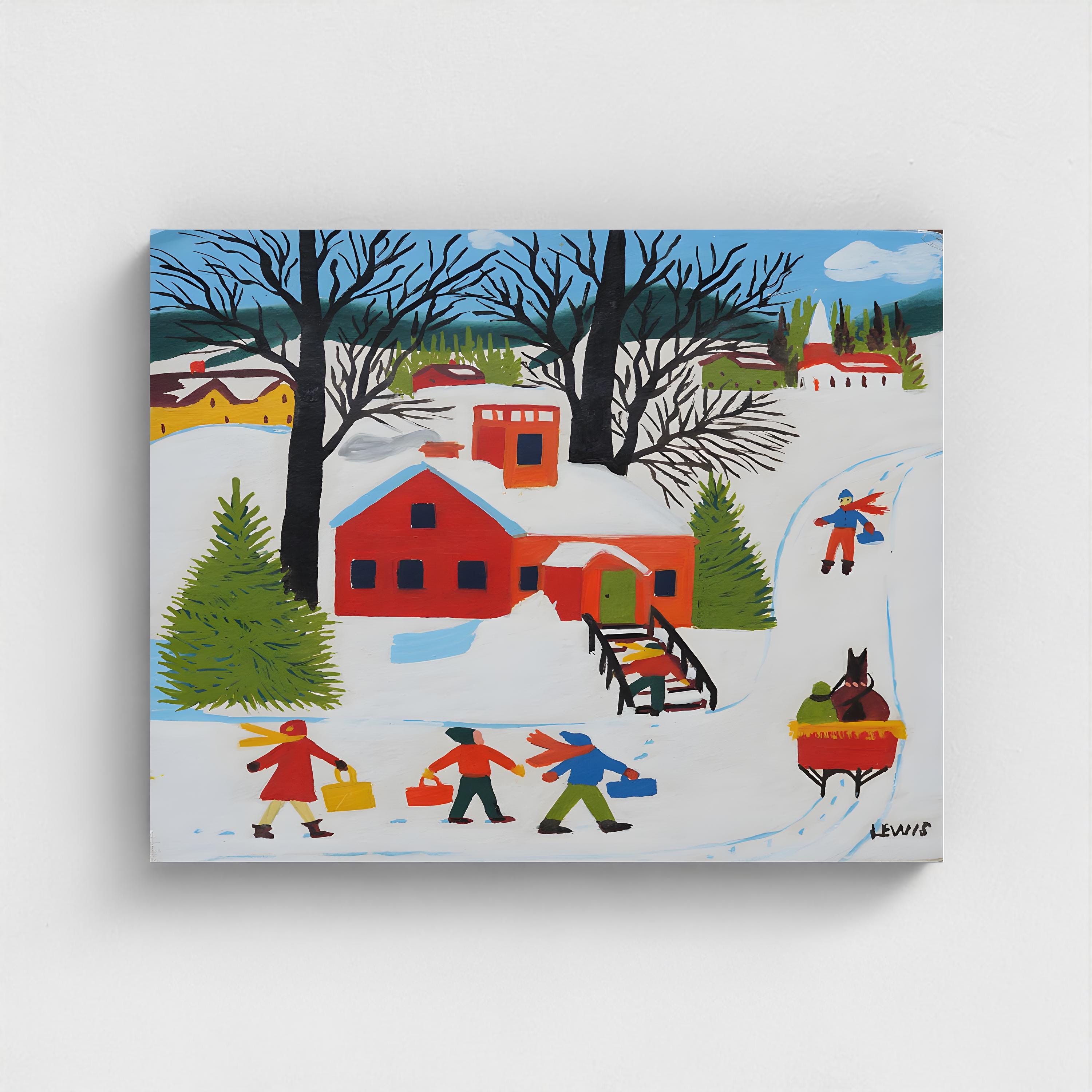 Maud Lewis, Winter Schoolhouse-1958 | Vintage Canadian Folk Art